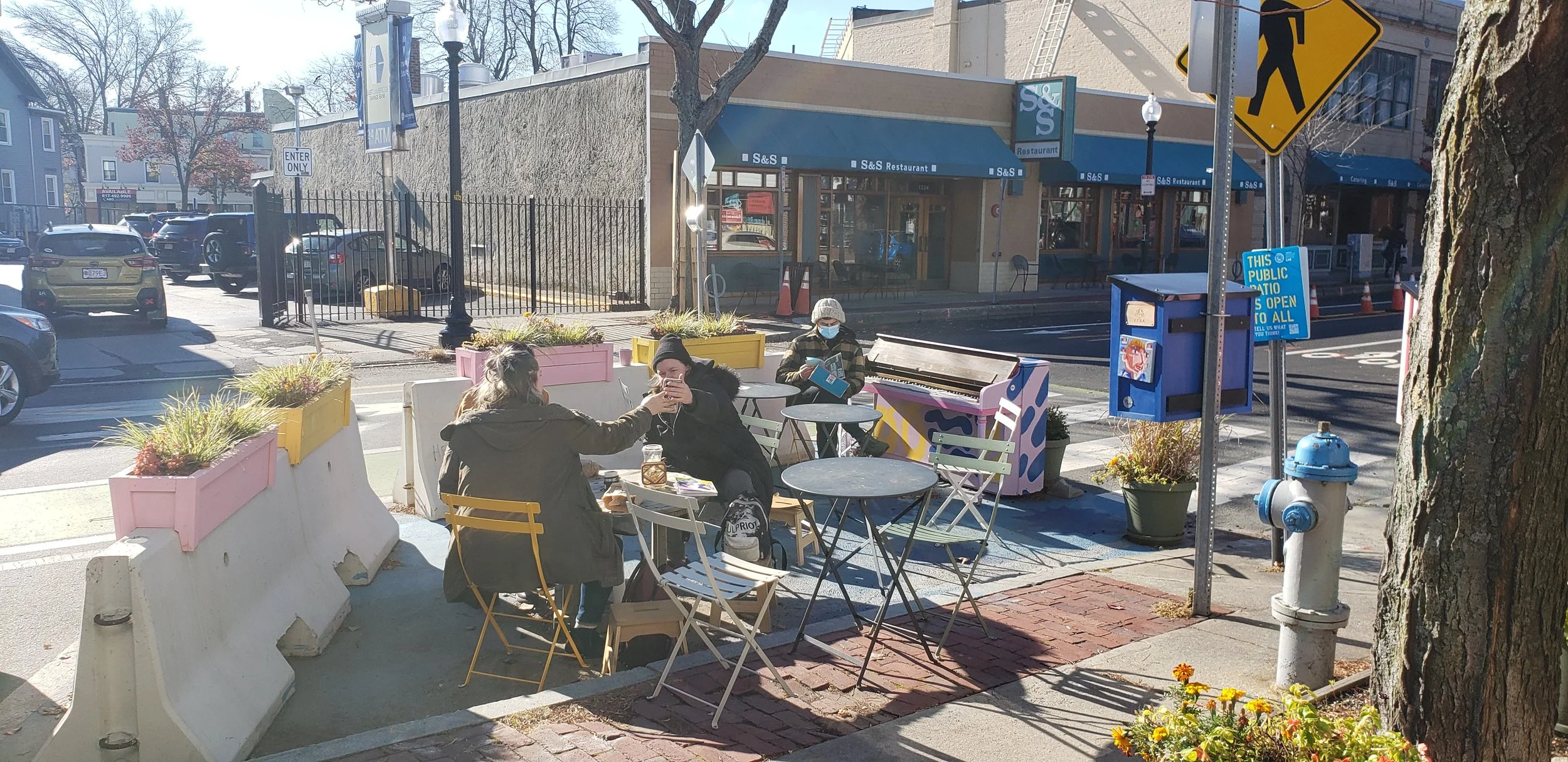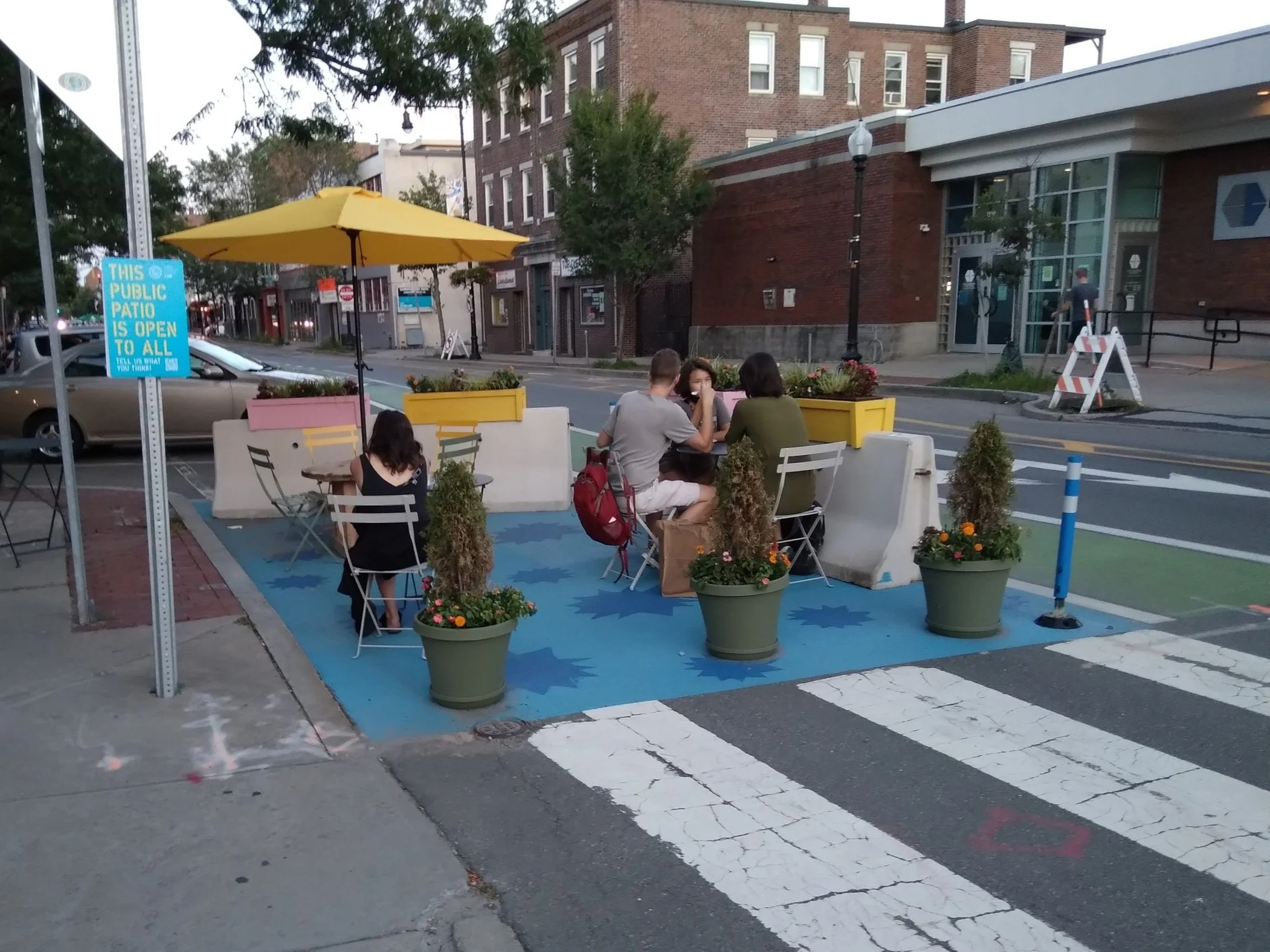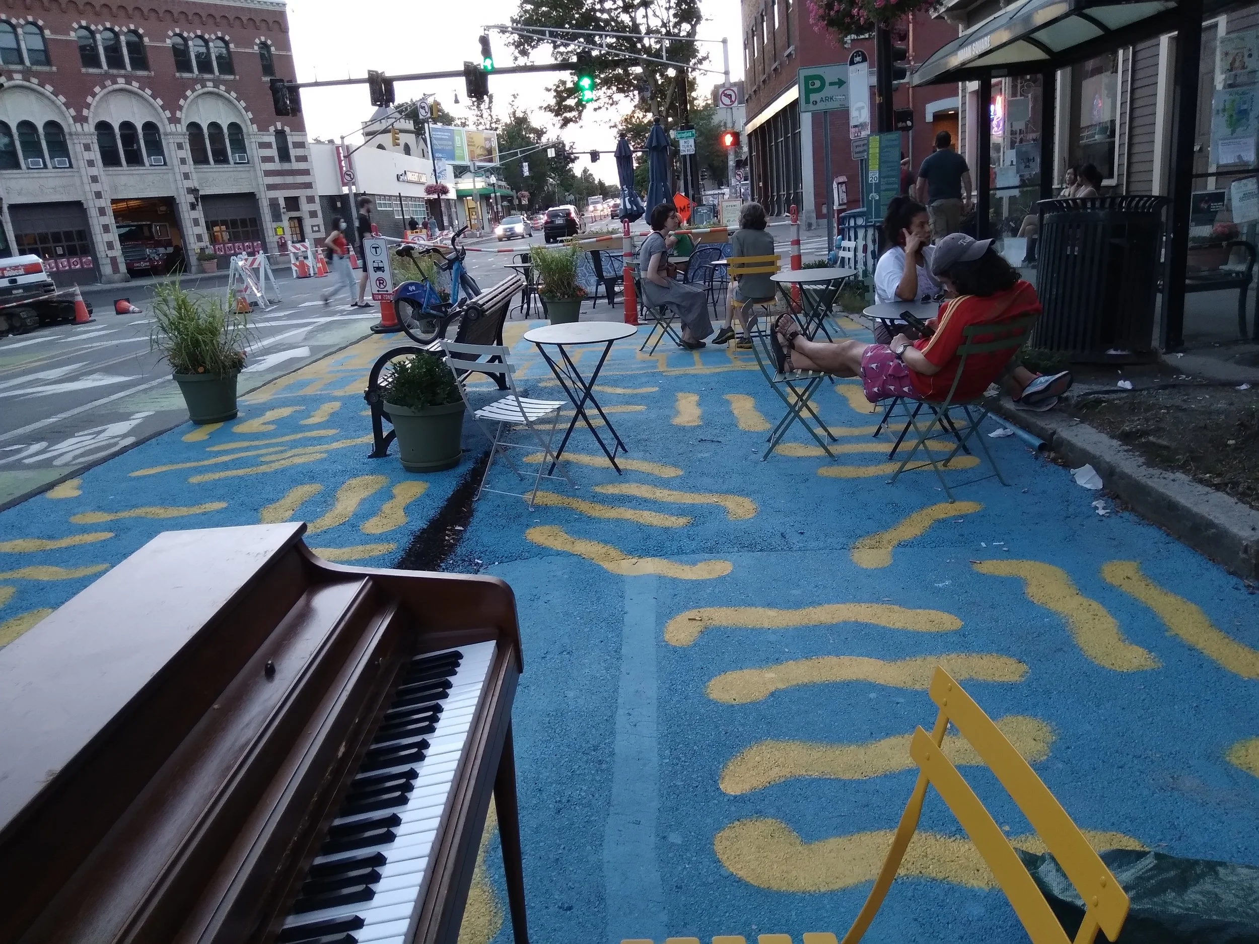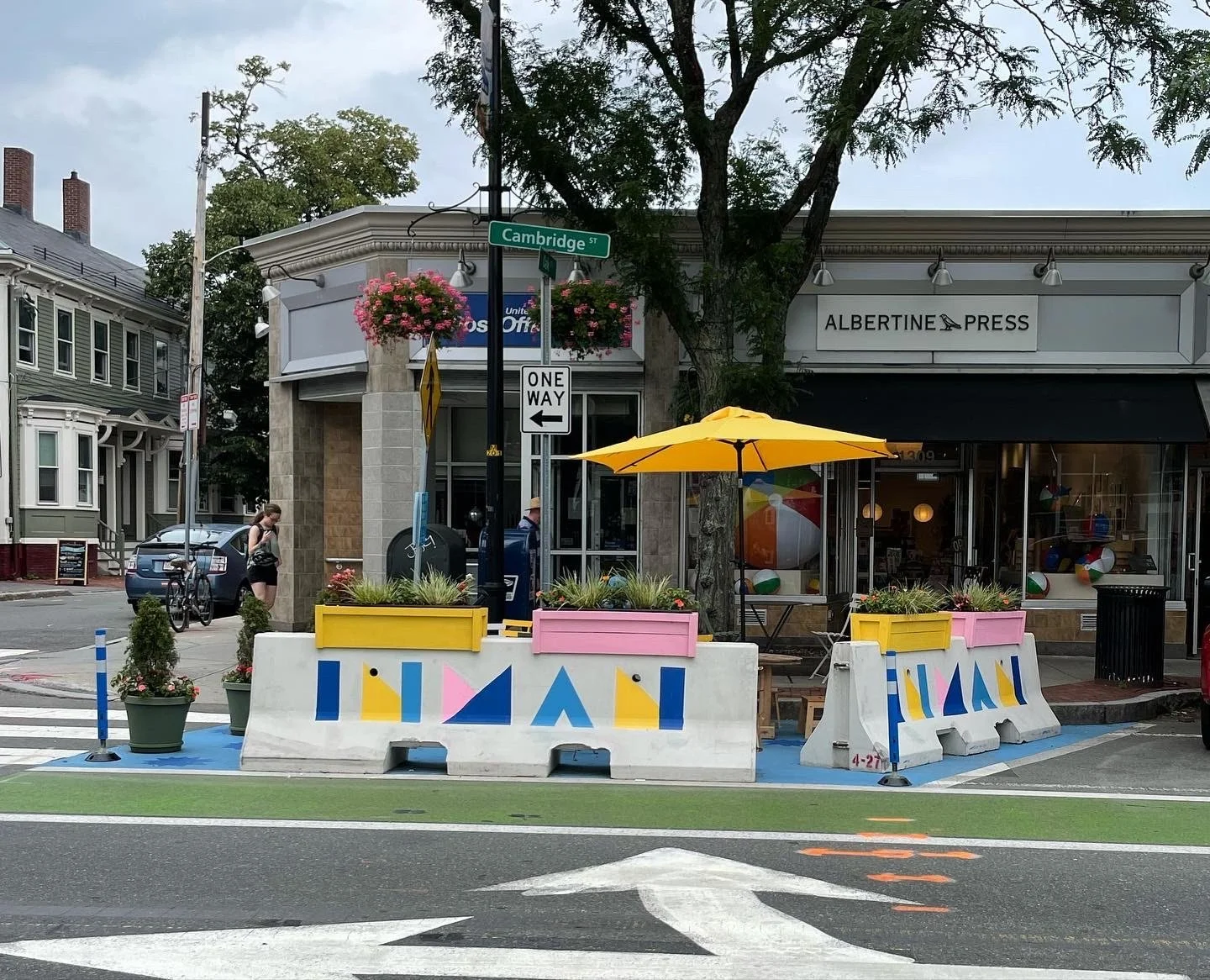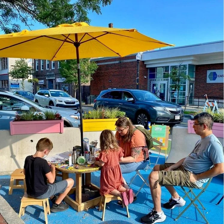 In Summer of 2021, Neighborways worked with the City of Cambridge to plan, design and implement two unique public patios in the heart of Inman Square as part of the City’s Public Space Lab initiative. The public patios sought to activate underutilized space in the city-owned right-of-way in a manner complementary to the outdoor dining patios which have been installed in great number in response to the COVID-19 pandemic.